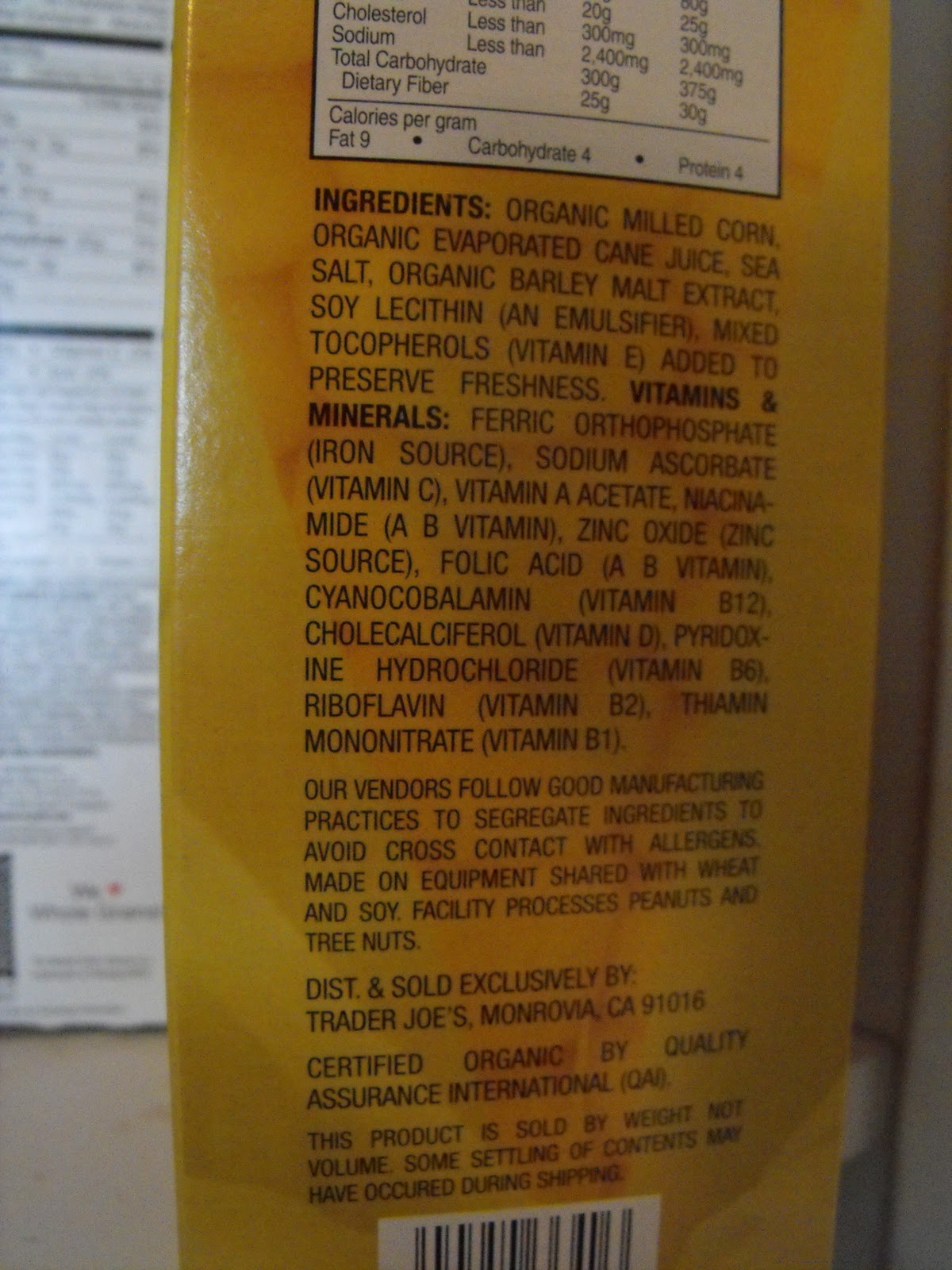 There are many reasons I have loved Trader Joe's. Firstly, I grew up in Pasadena, and lived very close to the original Trader Joe's, and I shopped there up into my 30s. Secondly, you cannot argue with their prices. They purposely buy large quantities of their products to keep their costs low. I mean, you can't scoff at 3 buck Chuck (now 4 I believe)! There is also a wide variety of affordable food, such as Fresh, Frozen, Packaged, Bottled, Bagged etc. And it seems to be of a certain quality that I don't see in regular grocery stores. Maybe it's because they have earth toned packaging, they don't use lots of bright reds and blues (which I associate with food coloring). The list of ingredients on the packaging is relatively short...meaning you can read all the ingredients without going cross-eyed.